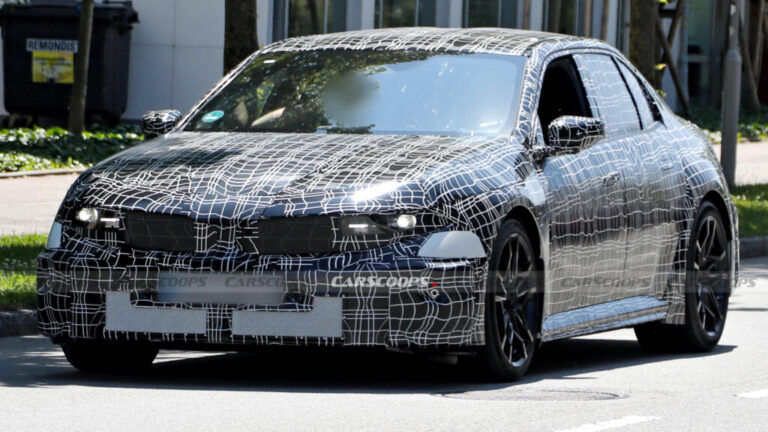 This same prototype is also equipped with a set of eye-catching black wheels featuring an intricate spoke design, similar to those of the G80 and the G82 M3. As we’ve seen in the past, it also has a Neue Klasse-inspired front fascia with sleek headlights that flow gracefully into the small faux kidney grilles. There are no coffin grilles in sight.